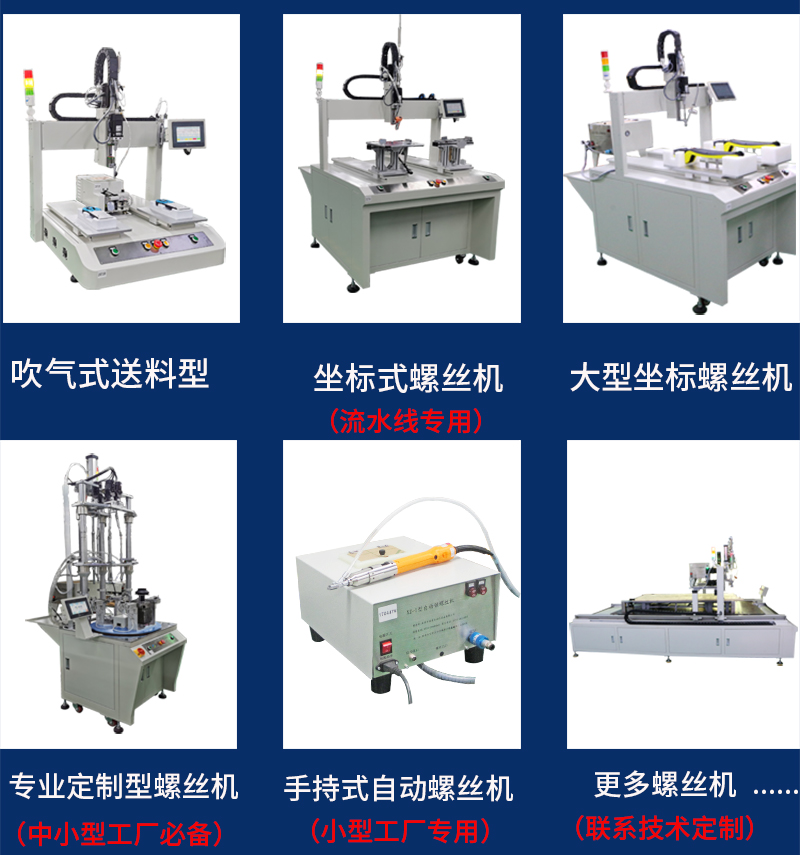 吸附式自動(dòng)鎖螺絲機(jī)采用吸附式鎖付系統(tǒng),搭配螺絲排列機(jī),采用逐點(diǎn)鎖付方式,通過程序可對(duì)每個(gè)螺絲孔位的X\Y\Z三個(gè)維度來定位,可根據(jù)不同產(chǎn)品螺絲數(shù)量及位置設(shè)定不同鎖付方案,并可儲(chǔ)存多套方案,滿足多產(chǎn)品螺絲緊固工作。富仕達(dá)自動(dòng)鎖螺絲機(jī)尺寸可根據(jù)產(chǎn)品尺寸大小及生產(chǎn)線情況來設(shè)計(jì),定制真正好用的自動(dòng)鎖螺絲設(shè)備。
